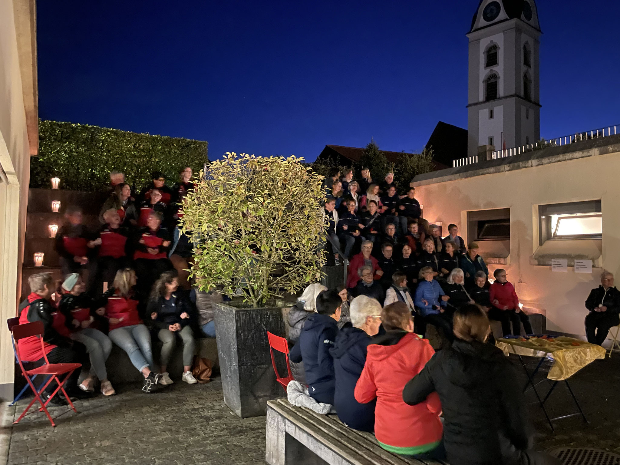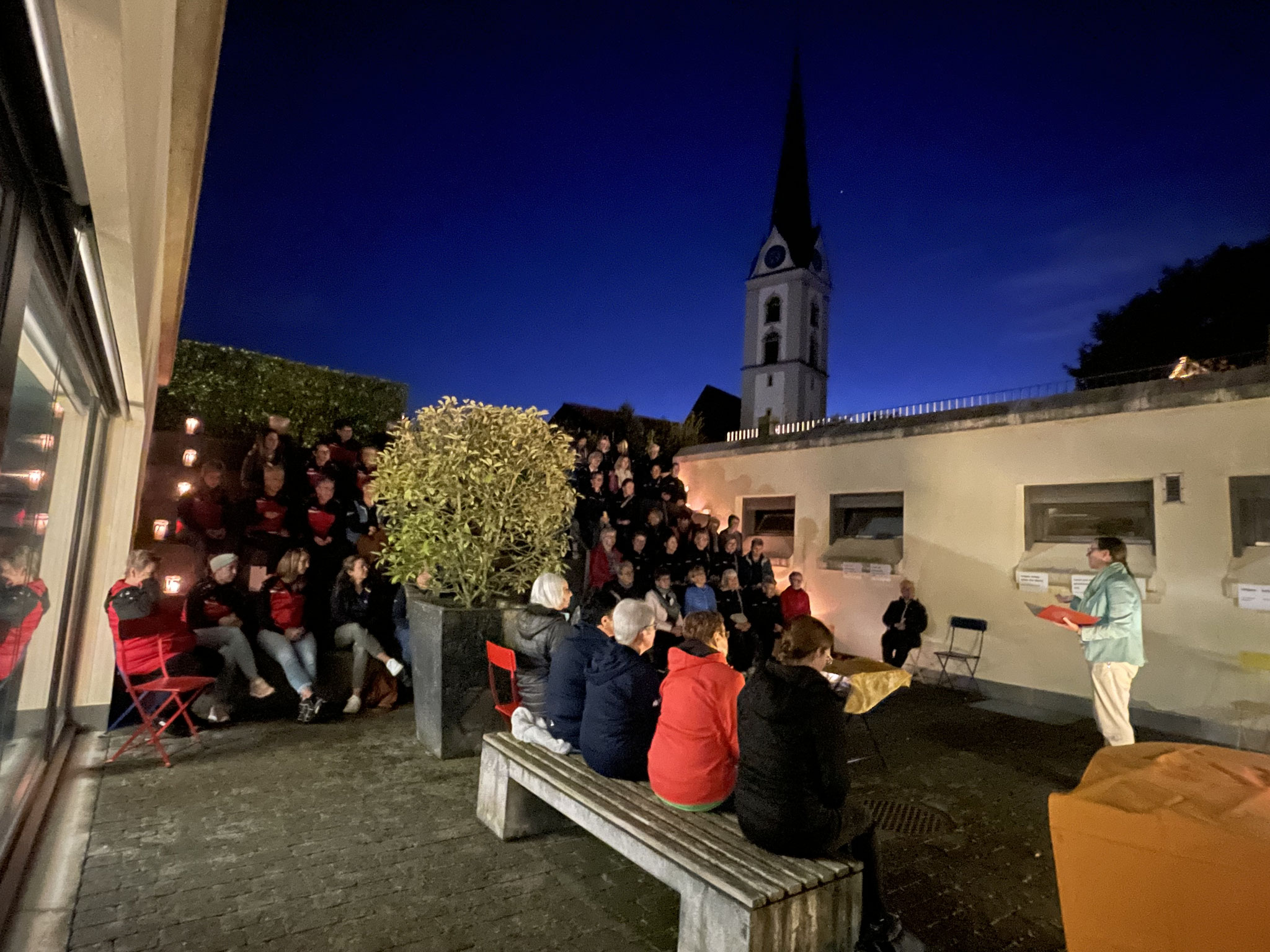 Bei einer stimmigen Feier feierten wir das Wirken und Schaffen von Hildegard von Bingen. Der wunderbare Herbstabend liess zu, dass wir den Innenhof des Pfarrhofs nutzen konnten. Vielen Dank den Mitwirkenden, insbesondere an Evi, Anne-Katrin und Manuela, welche die Feier wundervoll gestaltet und umrahmt haben. Das Restaurant Rose öffnete danach extra für uns die Türen, damit der gesellige Teil auch nicht fehlen musste. Dass die Turnvereinfrauen vielseitig sind, bewiesen sie bei der Singeinlage während der Feier, aber auch bei der anschliessenden Serviceunterstützung. :-)